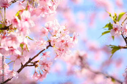 Cherry blossoms in full bloom and blue sky in japan