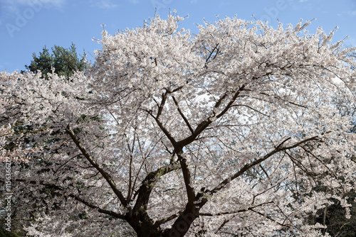Cherry blossoms in full bloom in the park, Toronto, Canada.