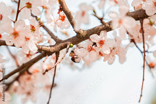 Cherry blossoms or other fruit trees in the spring season. Close up of flowers. Copy space. Sakura