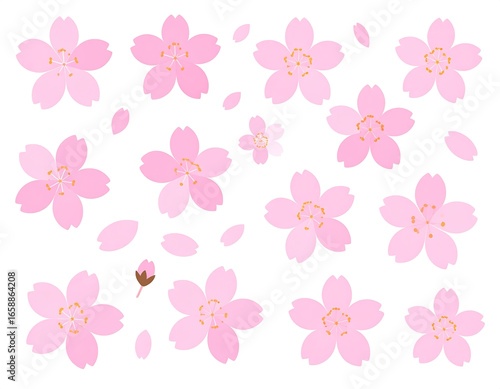 blossom, cherry, pink, flower, pattern, floral, spring, japanese, flower petals, pastel, pretty, soft, cute, round, stylised, simple, design, decoration, arrangement, isolated, white, background, elegant, nature, vector, illustration, art
