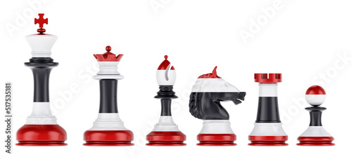 chess, figure, siam, thai, flag, row, white, king, rook, queen, pawn, knight, bishop, concept, three-dimensional, illustration, background, isolated, game, country, championship, national, patriotic, group, set, cut-out, checkmate, sport, board game, checkerboard, strategy, intellectual, black, teaching, tournament, entertainment, front view, battle, competition, leisure, playing, strategic, tactical, wooden, match