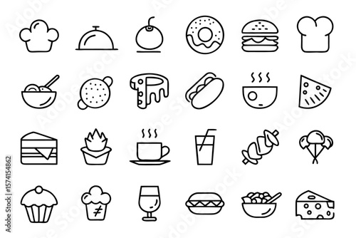 food, drink, icon, set, minimal, design, graphic, symbol, collection, culinary, eatery, menu, branding, cafes, bar, kitchen, appetence, refreshment, nourishment, epicure, organic, healthy, sweet, savoury, beverage, hot drink, tea, juice, water, bread, fruit, vegetable, dessert, snack