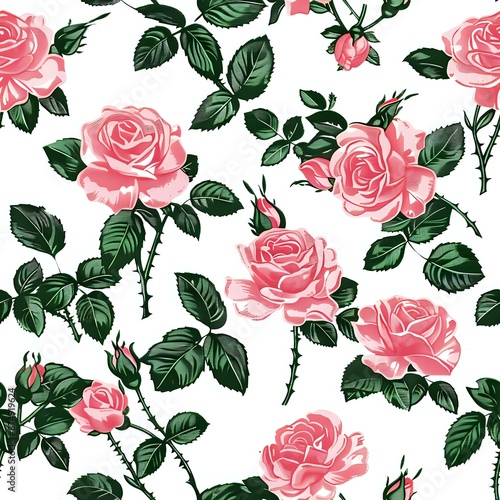 Chic Pink Rose and Green Leaf Romantic Floral Print