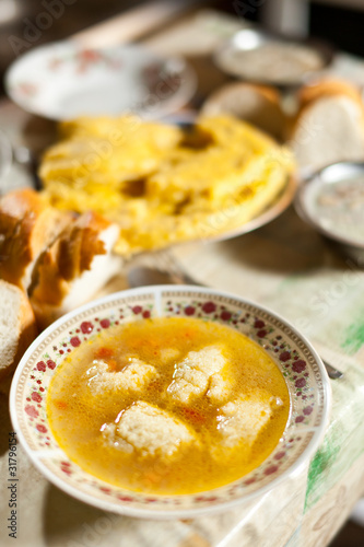 Chicken dumplings soup, traditional Romanian food