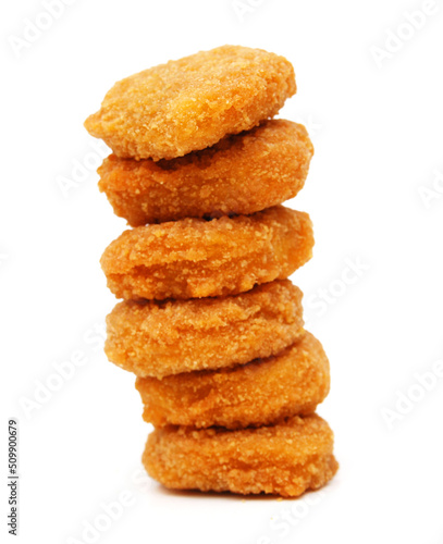 brown, chicken, crispy, crunchy, dish, fast, fat, food, fried, group, heap, isolated, junk, meat, nugget, snack, stack, white, yellow
