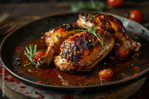 chicken on a plate with sauce, perfect for food blogs, restaurant menus, culinary websites, and recipe cards.