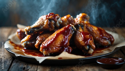 chicken, wing, bar-b-q, sauce, grilled, spicey, tender, crispy, savoury, popular, party, food, condiment, smoky, marinated, juicy, flavorful, finger food, bar-b-q, delicious, meal, nutritional, fast food, comfort food, casual attire, dinner, lunch, no people
