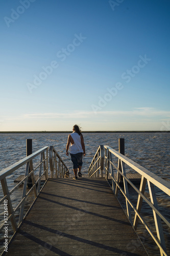 sea, docked, beach, water, levee, heaven, ocean, bridge, blue, landscape, nature, wood, dock, summer, coast, travel, lake, sunset, horizon, sun, way, vacation, woman, island