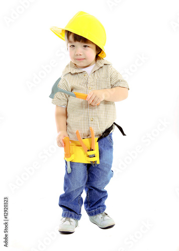 fun, toy, boy, face, ball, male, work, play, game, white, tool, children, happy, person, helmet, leisure, smiling, isolated, clothing, standing, childhood, recreation, construction