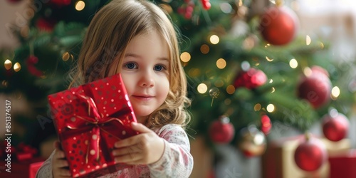 children, holding, present, children, girl, christmas, gift, box, tree, interior, bright, decoration, cheerful, background, copy space, emotion, lifestyle, home, long, glistering, joy, happy, caucasian, little, family, ornament, holiday, cute, hidden, light, colours, childhood, horizontal, surprise, hair, young, person