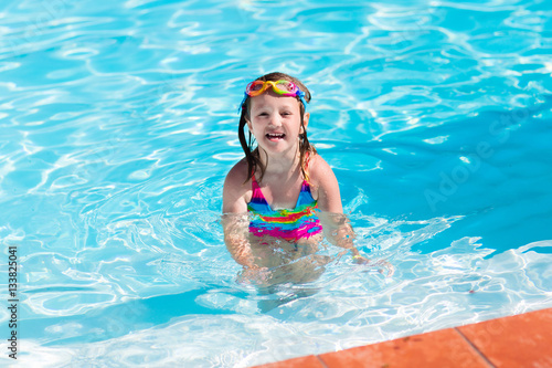 Child learning to swim in pool