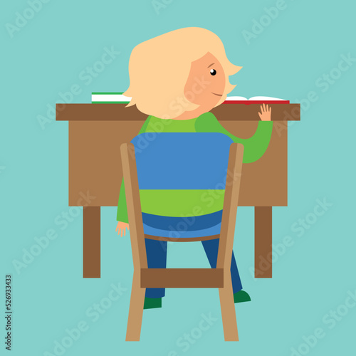 chair, table, desk, computer, cartoon, children, illustration, school, vector, sitting, office, student, book, person, people, business, laptop, woman, boy, education, children, classroom, work, study, reading, branding, preschool, graphic, design, character, man, draw