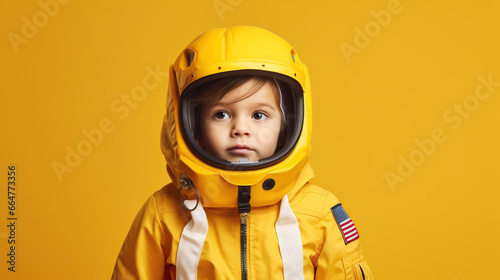 astronaut, space, children, children, baby, boy, costume, travel, isolated, yellow, helmet, suit, funny, cute, school, education, banner, design, copy space, childhood, smiling, children, youth