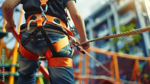 children, rope, course, safety, gear, harness, adventure, urban, thrilling, life events, activity, fun, play, climb, high, park, equipment, young, active, jean, orange, blue, summer, daytime, bright, colourful, energy, excitement, sharpened, back, view, building, city, sport, lifestyle, healthy, strong, confidence, challenge, climbing, children, playground