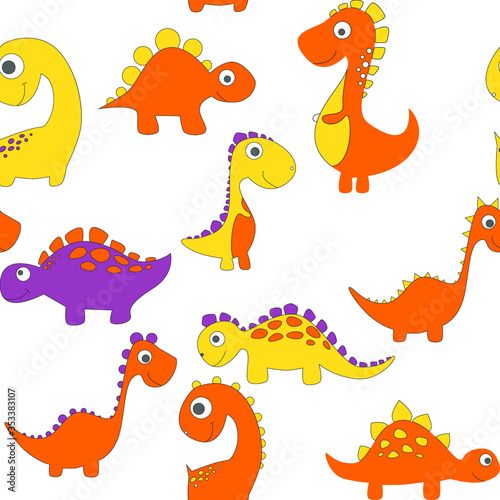 Childish dinosaur seamless pattern for fashion clothes, fabric, t shirts. hand drawn vector