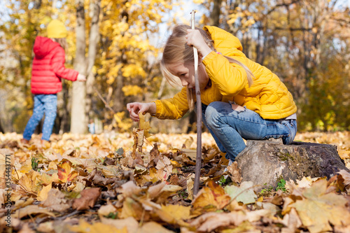 caucasian, tree branch, trip, toddler, leaf, children, gold, season, wood, stick, smiling, natural, tree, active, cheerful, hike, girl, adventure, outside, playing, autumn, little, children, forest, activity, young, children, yellow, enjoy, scenery, holiday, cute, fall, leisure, hiker, park, funny, explore, childhood, nature, hiking, staff, lifestyle, sunlight, travel, family, landscape, fun