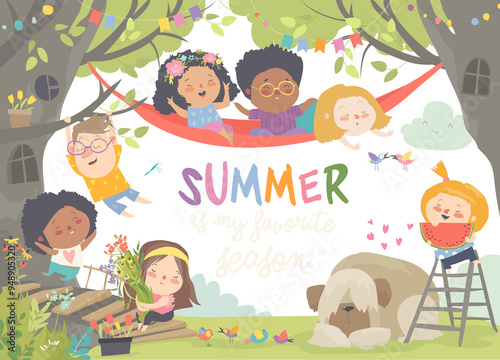 house, treehouse, tree, summer, children, vector, hammock, playhouse, ladder, childhood, wood, adventure, children, girl, dog, boy, happy, outdoors, smile, climbing, illustration, nature, flower, play, cartoon, cute, forest, green, hut, natural, recreation, joy, children, clubhouse, fun, playground, building, climb, club, colourful, fantasy, garden, home, park, sky, small, structure, season