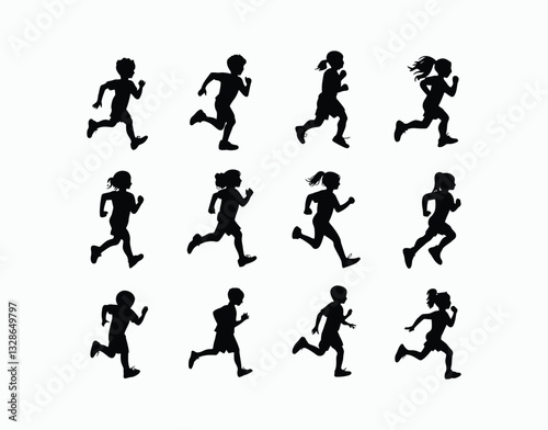 Children Running Silhouette Vector Template