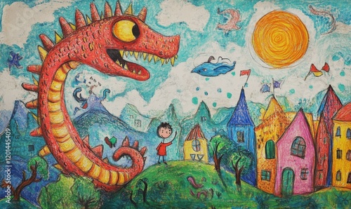 Children s drawings of the world, imagination, close up, creative showcase, whimsical, manipulation, art gallery