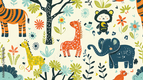 animal, cartoon, giraffe, illustration, vector, animal, wild, nature, funny, jungle, dragon, art, card, tree, elephant, zoo, flower, design, children, set, lion, wildlife, mammal, pattern, flat