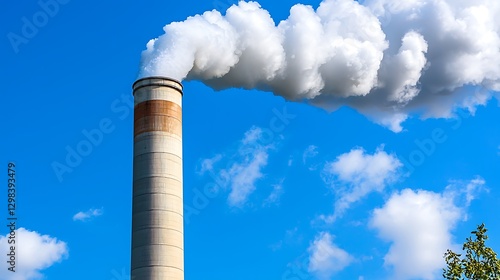 Chimney emitting smoke; air pollution, factory use, clear sky background