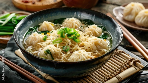Chinese cuisine Tan Tan noodle soup with dumplings