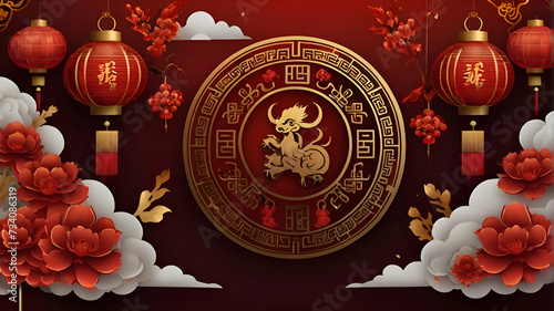 Chinese new year festive background with red decoration