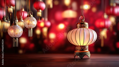 Chinese New Year Lanterns Light Up the Ceremony concept. Colorful lanterns glowing against a festive bokeh background