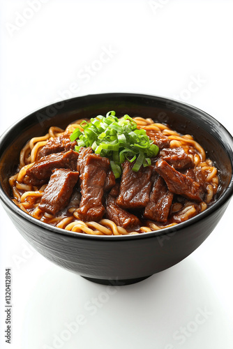 Chinese noodle shop background, a bowl of ribs noodles that looks very appetizing, noodle shop photography, Chinese kitchen style, studio lighting