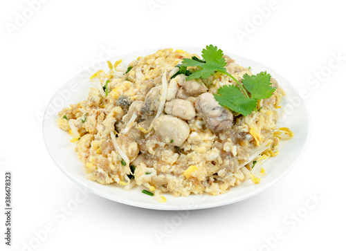 Chinese Oyster Omelette isolated on white background ,include clipping path