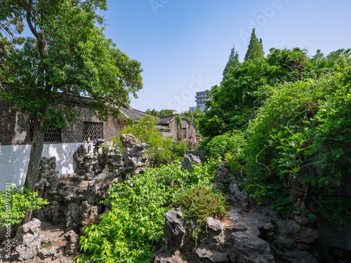 Chinese traditional architecture and rockery view of ancient Geyuan Garden, China
