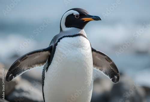 Chinstrap Penguin Profile With Wings Slightly Ajar