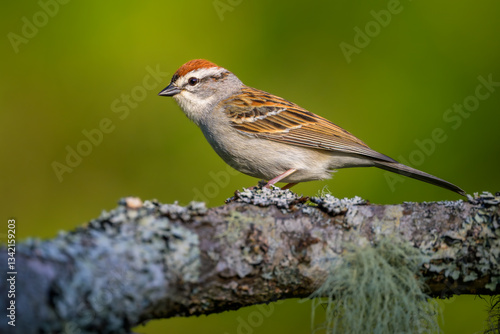 Chipping Sparrow bird perching on tree branch