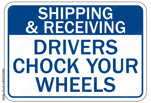 Chock wheels warning sign shipping and receiving. Drivers chock your wheels