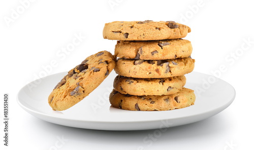cookie, chocolate, cookie, plate, isolated, chips, white, background, food, sweet, delicious, tasty, snack, biscuit, closeup, dessert, treat, calorie, object, nobody, indulgence, brown, crumb, bake, homemade, studio