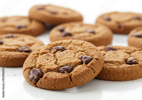 Chocolate chip cookie on white background close-up