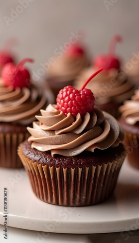 chocolate cupcakes with mocha mousse cream topping with a little red heart, color of mocha mousse, sweet, dessert, food, love