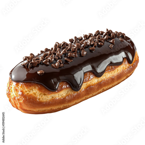 Chocolate Glazed Eclair with Sprinkles Isolated on transparent background