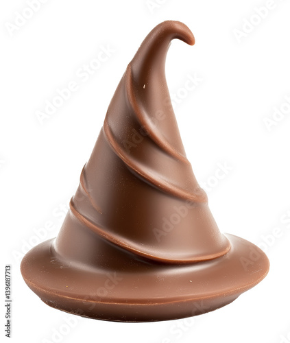 chocolate, magician, hat, conical, shape, swirling, smooth, texture, brown, dessert, confectionery, artistic, sweet, edible, creative, design, novelty, candy, delicious, treat, imaginative, unique, food, art, shiny, glossy, fun, fantasy, concept, whimsical, magic, culinary, handcraft, detailed, ornate, sculptural, epicure, luxury, piece, eye-catching, aesthetic, masterpiece, hand-made, original, transparent, background, white, isolated