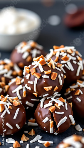 chocolate, coconut, date, bite, no, bake, made, with, cocoa, powder, and, a, hint, of, background, copy space