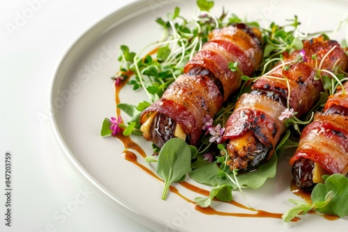 Chorizo-Wrapped Dates with Manchego and Fresh Green Presentation