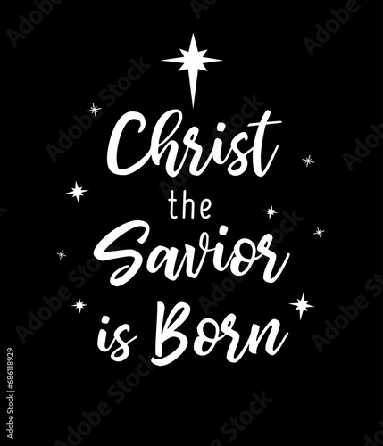 Christ the Savior is Born, Christmas t-shirt or scrapbooking design. Nativity typography background for xmas social media banners or posters. Vector illustration
