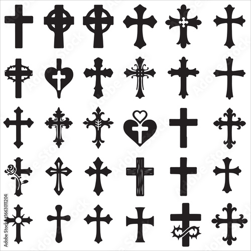 Christian Crosses Icon,Christian Cross Black and White royalty free vector icon set,Religion cross. Icon for design. Easily editable