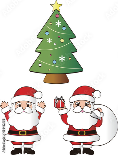 christmas クリスマス ツリー サンタクロース プレゼント 飾り イラスト素材