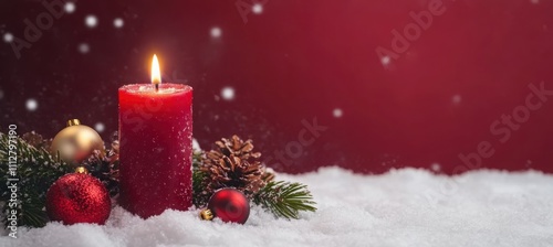 christmas, background, candle, advent, greeting card, blank, red, snow, cold, frost, copy space, 1, first, elegant, decoration, holiday, celebration, flames, tree, ball, winter, light, candlelight, ornament, burning, season, decor, december, tree branch, year, gold, gift, happy, new year, merry christmas, star, fir, grey, panorama, banner, header