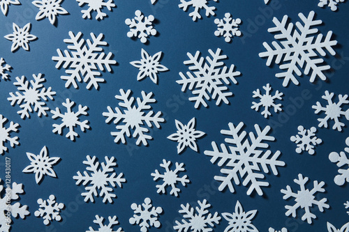 christmas, snowflake, holiday, postcard, winter, pattern, new year, background, white, snow, flake, decoration, spark, top, view, up high, copy space, ornament, new, concept, glossy, bright, star, festive, blue, celebration, christmas, glow, card, bow, ice, fir, illustration, ornamental, decorative, texture, text, merry, frost, gold, wooden, beautiful