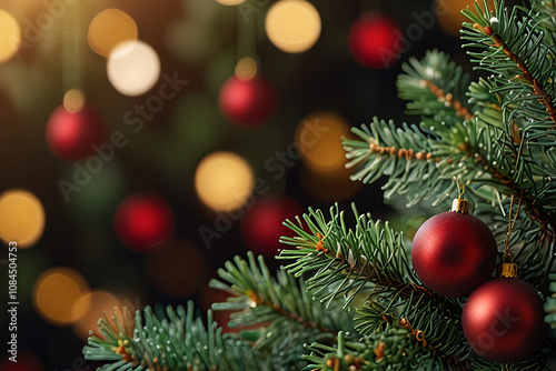 christmas background with christmas tree and decorations
