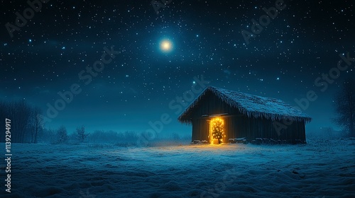 jesus christ, christmas, copy space, text, concept, idea, manger, religion, christian, holiday, barn, christianity, religious, greeting, bible, banner, card, celebrate, messiah, emmanuel, bethlehem, god, merry, december, star, straw, crib, panorama, blue light, panoramic, ray, shine, cabin, winter, snow, star, sky, moon, cold, dark, illuminated, light