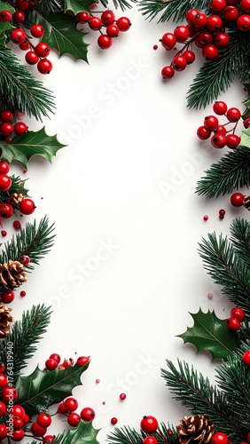 Christmas Banner with Pine, Red Berries, and Oak Leaves Border
