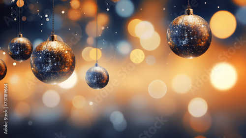 Christmas Bauble Bokeh Lights with Blue and Gold Background